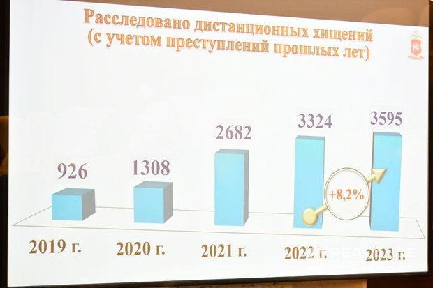 Тема дистанционных мошенничеств стала одной из главных в отчетном докладе генерал-майора. Треть всех преступлений в Татарстане за 2023 год пришлась именно на эту сферу. Всего таких фактов зарегистрировано 26,5 тысячи — почти в полтора раза больше, чем в прошлом году. Для сравнения — по числу таких краж и афер Татарстан опережают только Москва, Санкт-Петербург и Краснодарский край, но там динамика роста ниже — 20—26% по сравнению с прошлым годом.