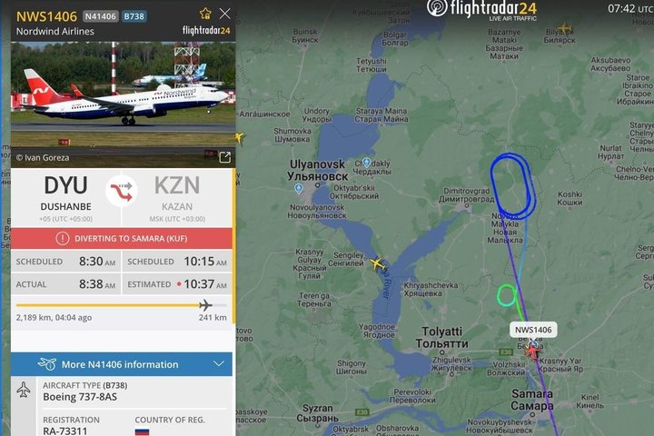 - Аэропорт Казани не принимал и не выпускал рейсы из-за угрозы БПЛА. Так, по данным сервиса FlightRadar24, в районе Димитровграда рейс Душанбе — Казань совершил несколько кругов и направился в сторону Самары.
