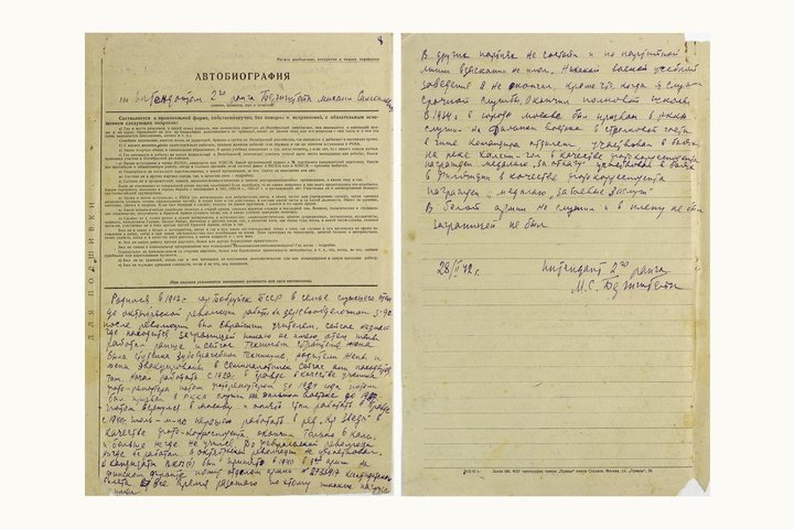 На днях Минобороны России рассекретило личное дело Бернштейна. В нем автобиография, из которой стало известно о жизни фотокорреспондента до начала войны. Бернштейн Михаил Самойлович (Самуилович) родился 23 мая 1912 года в Бобруйске, тогда еще Российской империи, а в анкете написал — Белорусская ССР. До революции его отец был служащим, а после — работал «еврейским учителем». Михаил окончил только шесть классов. В возрасте 17 лет в октябре 1929 года начал работать в газете «Правда» учеником фоторепортера, а с мая 1932 года его перевели на должность фотокорреспондента, чем он и занимался до 1934 года, пока его не призвали в армию. Бернштейн проходил службу на Дальнем Востоке. В январе 1937 года вернулся в Москву и продолжил работать в «Правде».
