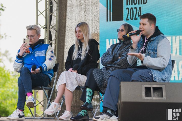 Писатель, журналист, книжный обозреватель, контент-редактор издательской группы «Альпина» Денис Лукьянов; писательница, поэтесса и музыкант Александра Шалашова; музыкант и поэтесса Инна Волкова; директор издательства «Полынь» Александр Лазарев. предоставлено организаторами международного фестиваля «Белый июнь»