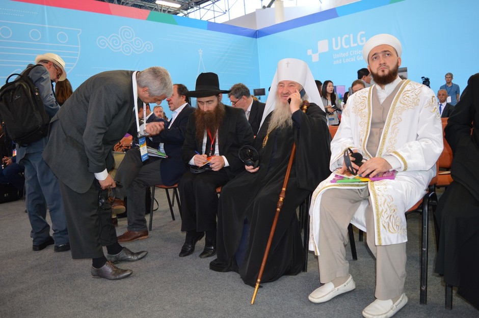 В эти дни Казань стала площадкой для обсуждения проблем городов. Делегаты от многих муниципалитетов всего мира приняли участие в заседании организации «Объединенные города и местные власти». Первый день ознаменовался повесткой толерантности и транспортной урбанистики. Естественно, местные городские власти заставили обратить внимание на Казань, чтобы добиться положительных отзывов от гостей, чего они и достигли. Однако самые теплые слова они получили… от религиозных деятелей республики. На форуме побывал и корреспондент «Реального времени».