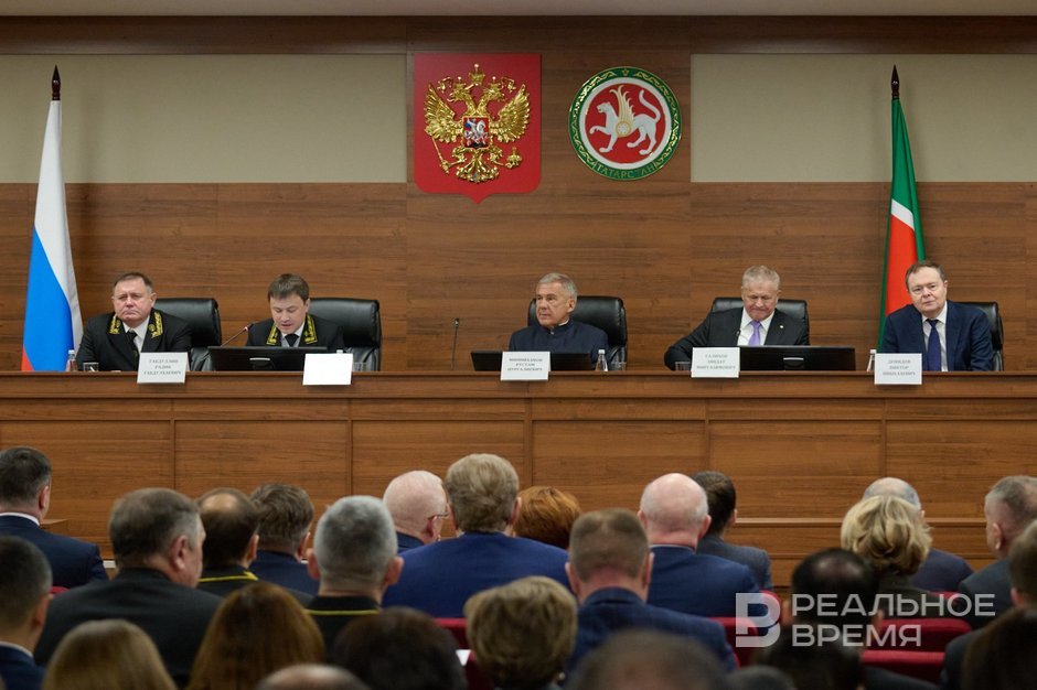 В финале открытой части заседания Рустам Минниханов вручил республиканские награды. Медали ордена «За заслуги перед РТ» удостоен председатель Приволжского райсуда Казани Ринат Сафин. Медалями «За доблестный труд» награждены председатель Советского суда Казани Лилия Гиниятуллина и Ринат Тохватуллин, замначальника отдела по противодействию коррупции управления Судебного департамента в РТ. Благодарности от раиса республики получили судьи Верховного суда РТ Сергей Куранов и Айрат Миннуллин.
