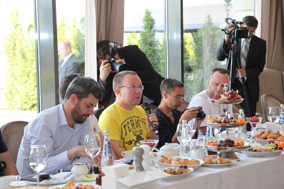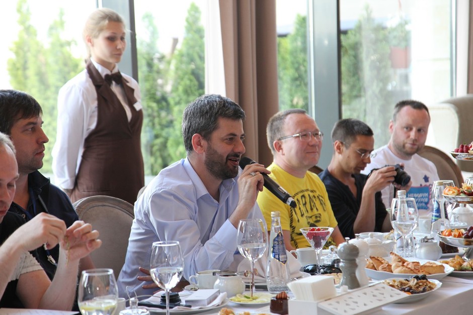 — Пироги не пластмассовые — можно есть, — призвал блогеров Рустам Нургалиевич. После чего, собственно, начался процесс непосредственно общения.