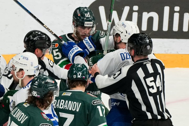 Но «Ак Барс», похоже, не сумел вовремя перестроиться под изменения «формата». Второй период начался для хозяев с «холодного душа». На четвертой минуте Никита Лямкин получил удаление за подножку. В итоге «Динамо» реализовало большинство за полминуты, отличились два Максима. Комтуа прострелил на «пятак», где его тезка Джиошвили продавил защитников «Ак Барса» и в одно касание забросил шайбу в ворота — 0:1.