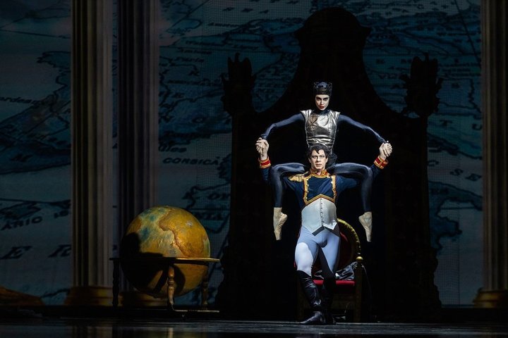 Но, пожалуй, самую удивительную женскую партию в балете танцевала Дарья Донцова. Ее героиня — Война. Вероятнее всего, это единственное гротескное отступление, которое позволил себе сделать Петров, задумывая этот балет. Война околдовывает Наполеона, радуется страданиям и горю, сеет разрушение и собирает кровавую жатву. Резкая, лукавая, хищная, но порой скудная пластика ее движений придает спектаклю фантасмагорический оттенок.