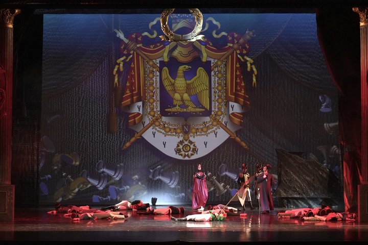 — Мы, кстати, сразу ставили себе задачу: что бы ни случилось, мы ставим прежде всего на нашу собственную труппу. И на собственный хор — 60 человек за сценой будут исполнять все вокализы вживую. И, конечно, работает наш оркестр. В режиме работы на гастролях я никогда не признаю фонограмм. Театр никуда не выезжает без оркестра. Иначе мы потеряем свое лицо, — говорил генеральный директор театра.
