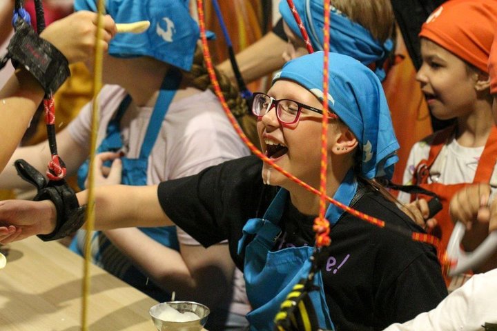 Праздник не завершился после приготовления блюд. Наоборот, только набрал обороты. Не покинул ребят и обаятельный мастер-шеф, продолжая задавать тон мероприятию. Дети готовили смузи, вслепую подбирая ингредиенты, пытались покормить друг друга мороженым, когда их руками манипулировали участники другой команды. Во время последнего задания изрядно перепачкались, но и эмоции зашкаливали.