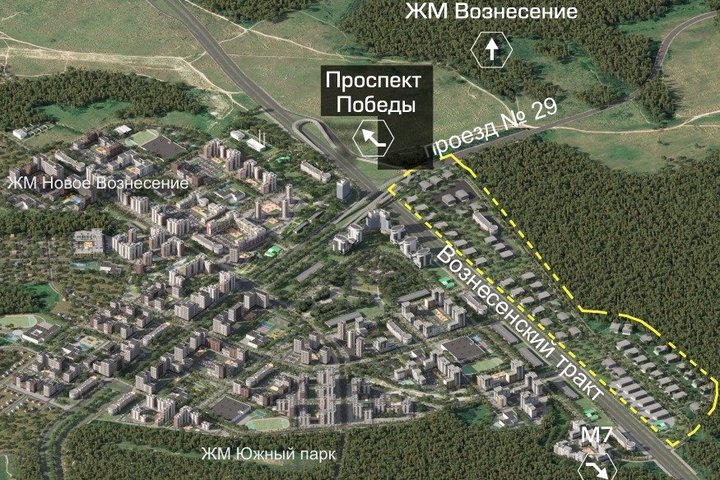 На сегодня в районе утверждены шесть крупных проектов планировок территорий: «Новое Вознесение, Южный парк», «Новое Вознесение — 2», «Самосырово», «Тихая гавань», «Вертелевка», «Северный парк». Создавать общественно-деловые ядра здесь начали еще до возведения жилья, инвесторы выбирают локации под строительство торговых комплексов, производственных площадок или административных зданий.