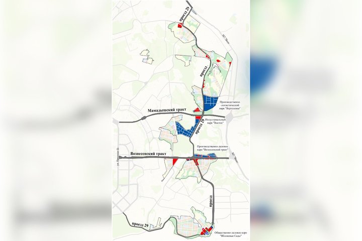 Сеть промпарков у Салмачей, Куюков, вдоль Мамадышского и Вознесенского трактов