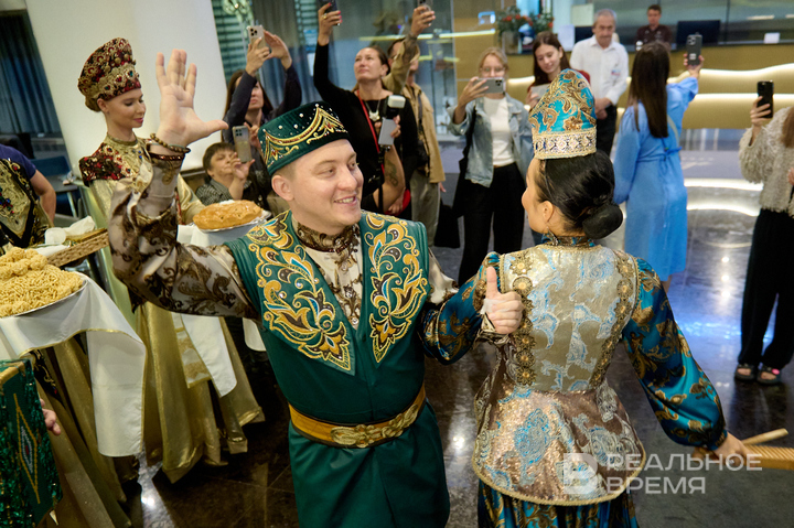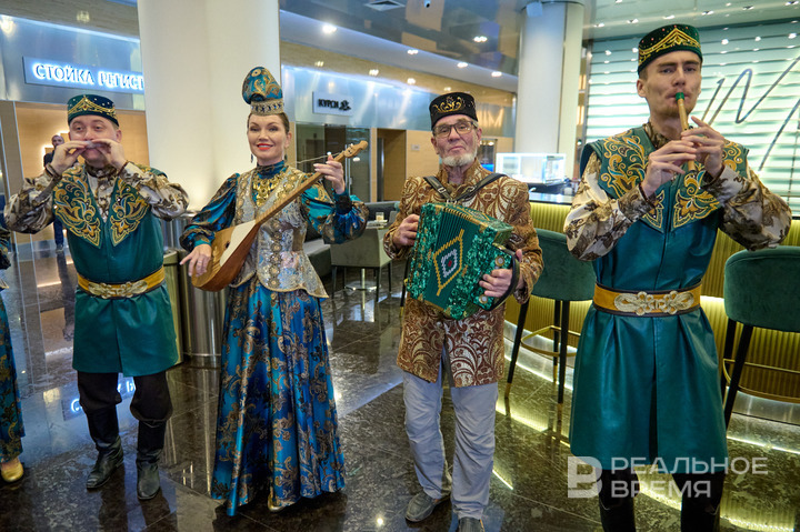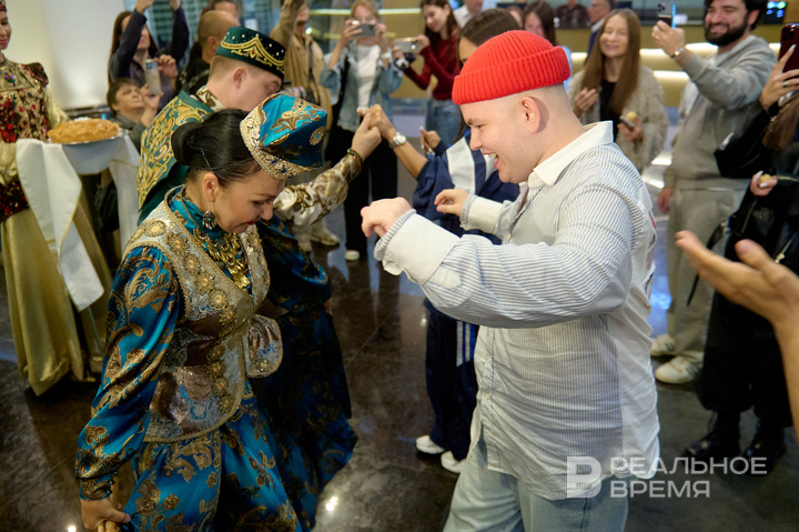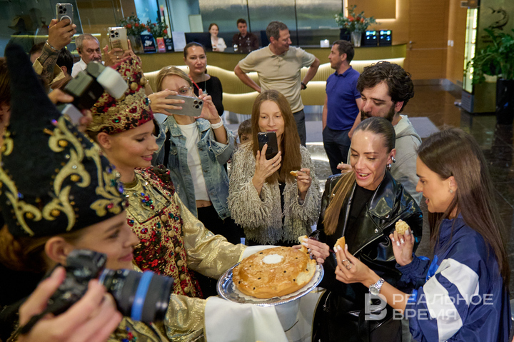 В столице Татарстана гостей приняли с почестями, встретили чак-чаком и национальными песнями и танцами. Несмотря на долгую поездку, настроение у музыкантов было приподнятое.