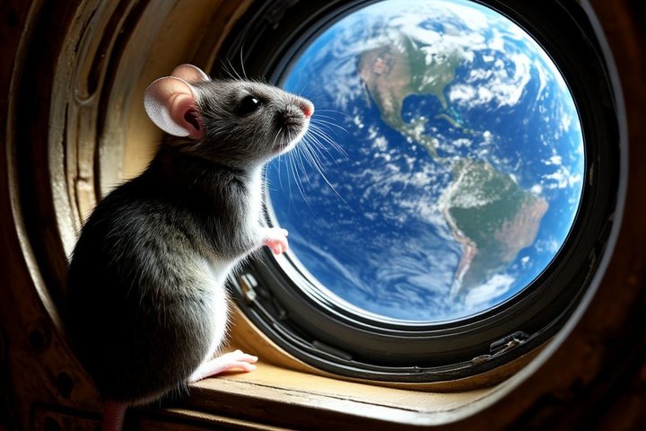 На борту спутника находится целый взвод мышей-космонавтов — 75 особей. Людмила Губаева/сгенерировано при помощи нейросети «Шедеврум»
