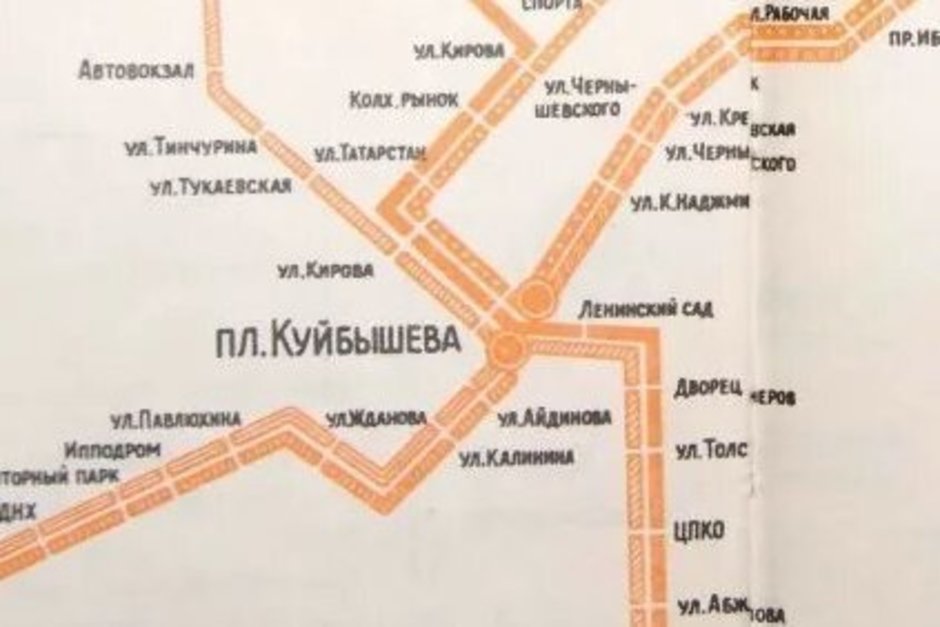 Если посмотреть на советскую схему троллейбусных маршрутов Казани, то мы увидим, что остановка в Старо-Татарской слободе тогда еще у сохранившихся номеров «Болгар» называлась «Улица Кирова», по предыдущему названию улицы Московской (оно до сих пор в ходу у горожан). При этом кажется очевидным дать ей новое наименование наряду с «Козьей» и «Суконной» — «Старо-Татарская слобода».