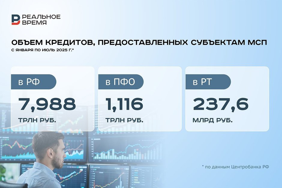Малый и средний бизнес Татарстана в 2025 году активно наращивает долги, следует из данных Центробанка. Если в январе объем выданных субъектам МСП кредитов составил 26,28 млрд рублей, то в июле предприниматели набрали уже 35,9 млрд, а общий объем взятых в долг денег за семь месяцев превысил 237,66 млрд.