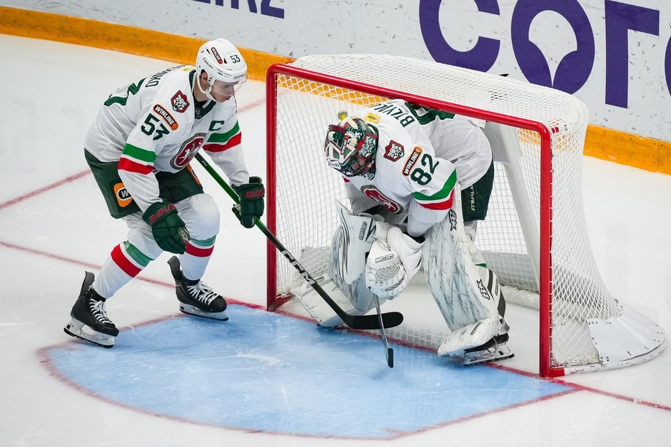 В концовке уже активнее действовал «Ак Барс». В том числе в большинстве, когда мог переправить шайбу в ворота соперника, но сыграл не лучшим образом. В третьем периоде «Барыс» выгрыз себе гол: навалились на ворота Билялова — и Кирилл Панюков с добивания сравнял счет — 2:2.