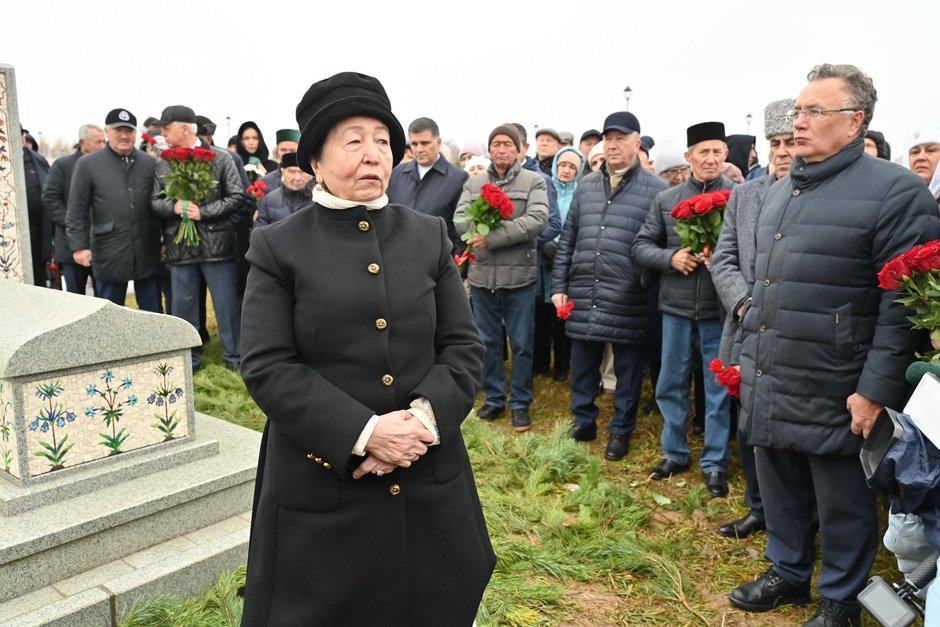 Говоря о памятнике, Алия Абдуллина подчеркнула: он выполнен в восточном стиле, вдохновлен архитектурой империи Моголов. «Человек светлый, поэтому гранит тоже светлый. Зимой цветов не бывает, букеты быстро сохнут. Эти цветы вечные», — заключила она.