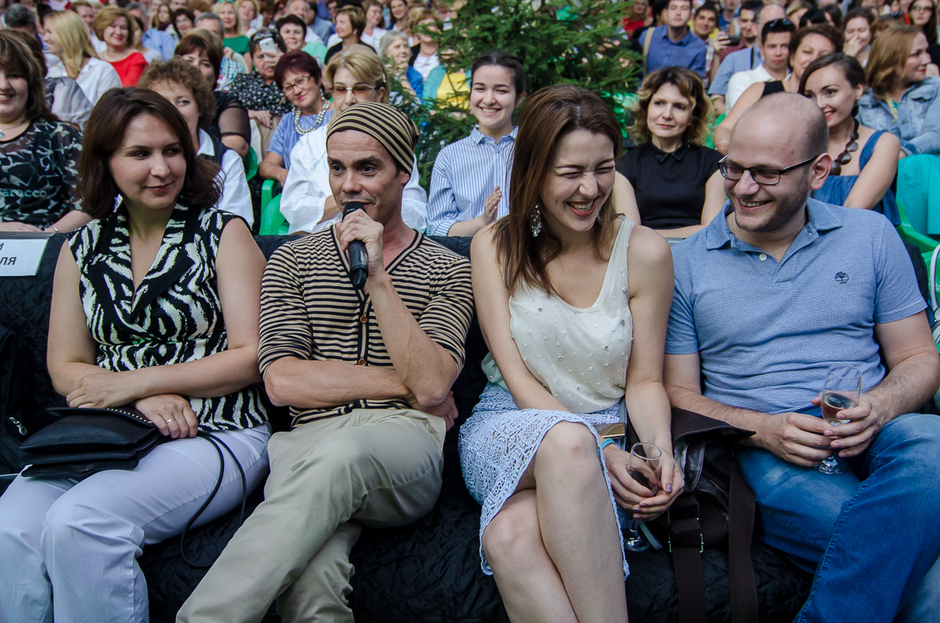 Волконадский рассказал, что в этом году увеличено количество посадочных мест, открыта зона самой усадьбы, балкончики, зоны со столиками. Одним словом, все переделали, чтобы слушатели могли еще и танцевать. Собственно, призывом к этому и закончил свой короткий спич Волконадский. Он добавил, что в этом году даже появится табличка с надписью «Танцпол». Тем более, выяснилось, что Мигель не только поет, но еще и танцует.