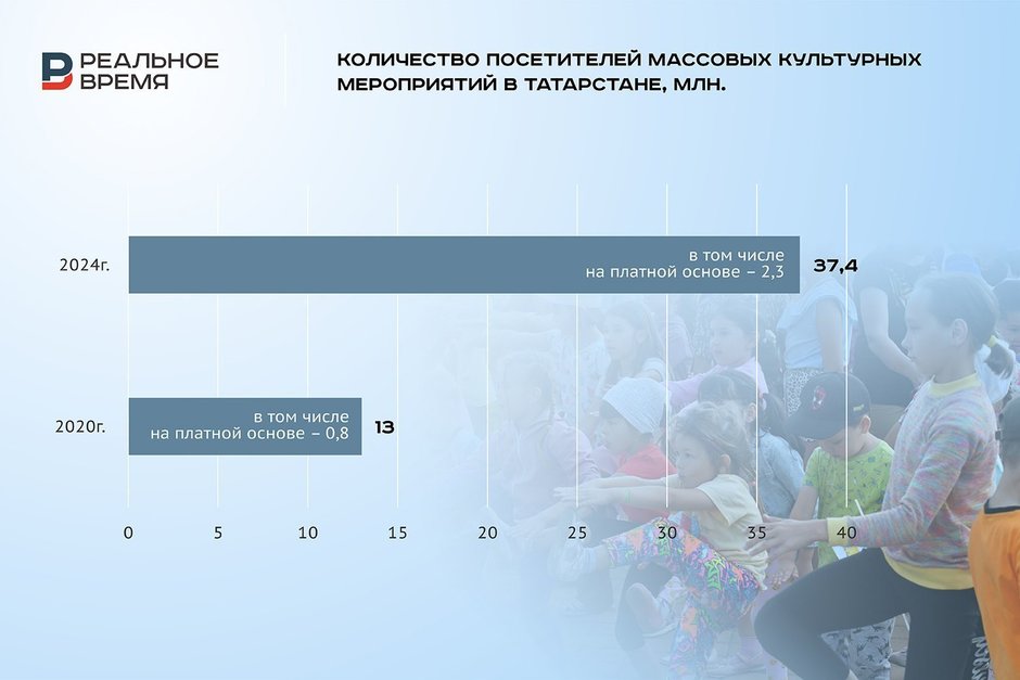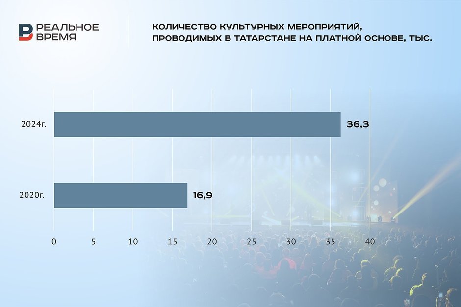 При этом растет доля мероприятий, которые проводятся на платной основе. Если в 2020 году их было проведено 16,9 тыс., то в 2024-м — в два с лишним раза больше — 36,3 тыс. Число посетителей таких массовых мероприятий тоже заметно выросло: с 13 млн в 2020 году до 37,4 млн в 2024-м, в том числе на платной основе — с 0,8 млн в 2020 году до 2,3 миллиона.