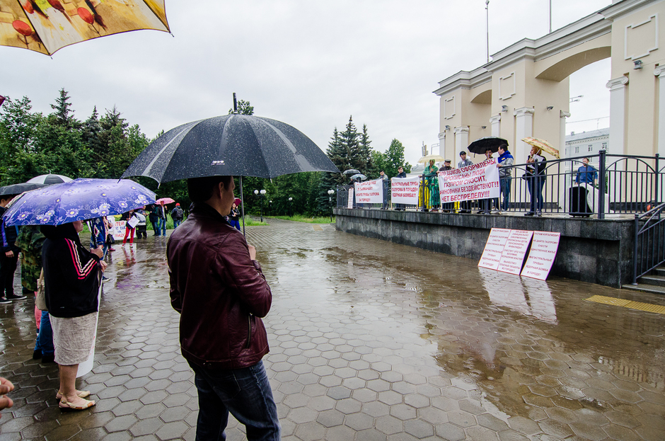 Несмотря на дождь сегодня в парке «Крылья Советов» на митинге собралось около 100 жителей поселка Салмачи. Причина, которая заставила людей в свой выходной выйти с плакатами под дождем, — все те же газопроводы, из-за которых под снос, согласно требованию татарстанского филиала газовой монополии «Газпром Трансгаз Казань», должны пойти несколько домов, под угрозой — еще больше 200. Вся проблема в том, что ряд домов жителей поселка Салмачи находятся в зоне нарушения минимально допустимых расстояний сразу трех магистральных газопроводов. Обращения в различные ведомства, по словам присутствующих, закончились отписками без принятия какого-то конкретного решения.