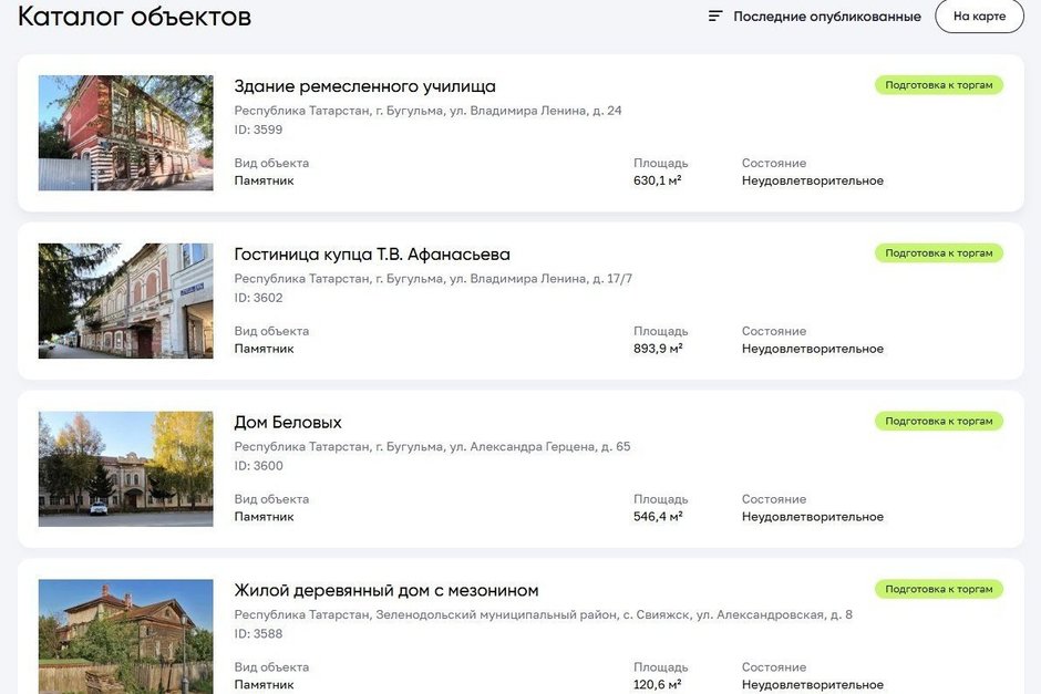 С 2024 года сведения о продаваемых объектах также размещены на платформе «Наследие.Дом.РФ». Только за два месяца в список после инвентаризации включили 26 памятников Татарстана — их число увеличилось с 30 до 56.