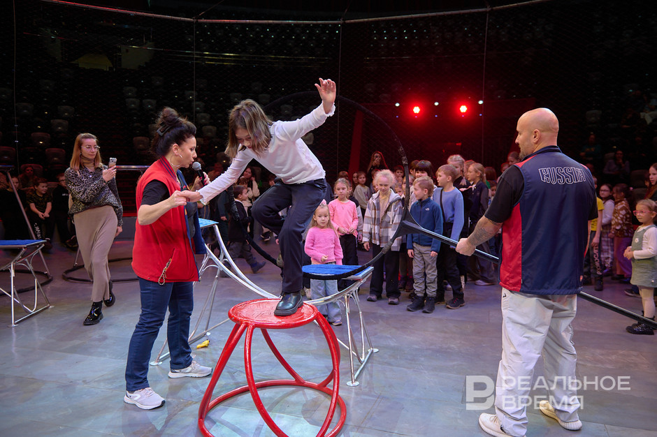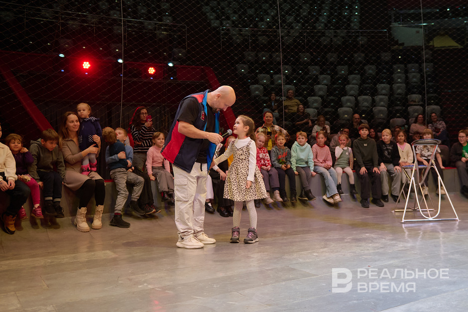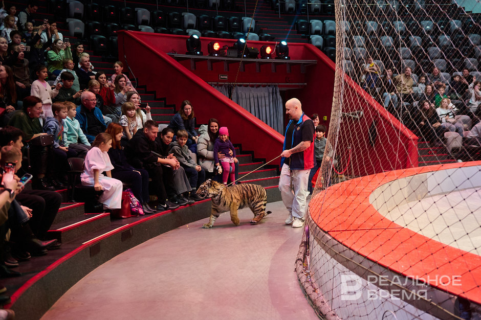 На арене цирка все, что называется, привычно: на огороженной территории расположились тигры. Но нет громкой музыки, света, вместо этого Багдасаровы общаются со зрителями, немного гоняют животных, чтобы они не ленились, и показывают с ними трюки, объясняя незаметные порой нюансы. Вопросы в основном задают дети, но иногда прорываются и родители.