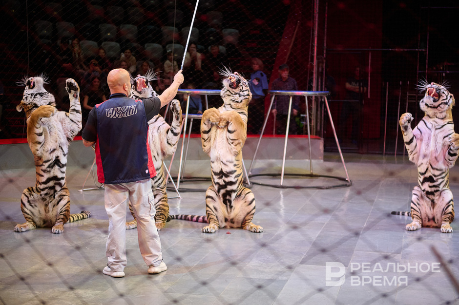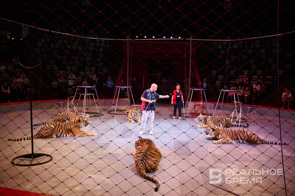 На репетиции было шесть больших тигров. Динар Фатыхов / realnoevremya.ru