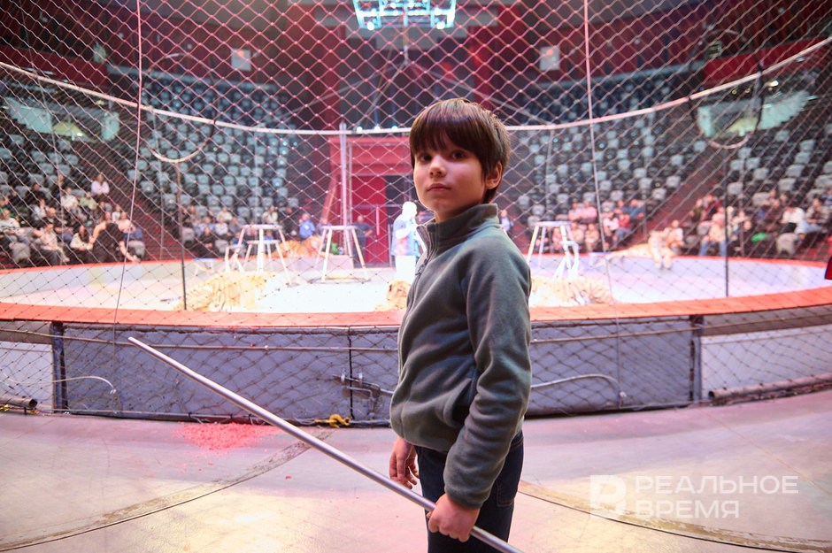 Вообще на дрессировщика специально не учатся, пояснил Артур. Просто приходят люди и начинают работать в цирке: это уборка, мытье, переезды. Сейчас они стоят за сеткой у арены. Среди них — младший сын Артура Марк.