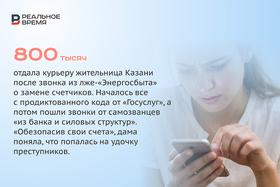 В третьем квартале процесс продолжается. Каждый день появляются новости о том, что еще один доверчивый татарстанец лишился всех сбережений, поговорив с «майором ФСБ», «службой поддержки Госуслуг» и даже с «сотрудниками водоканала». Приведем лишь пять из множества случаев, о которых стало известно за последнюю неделю ноября:
