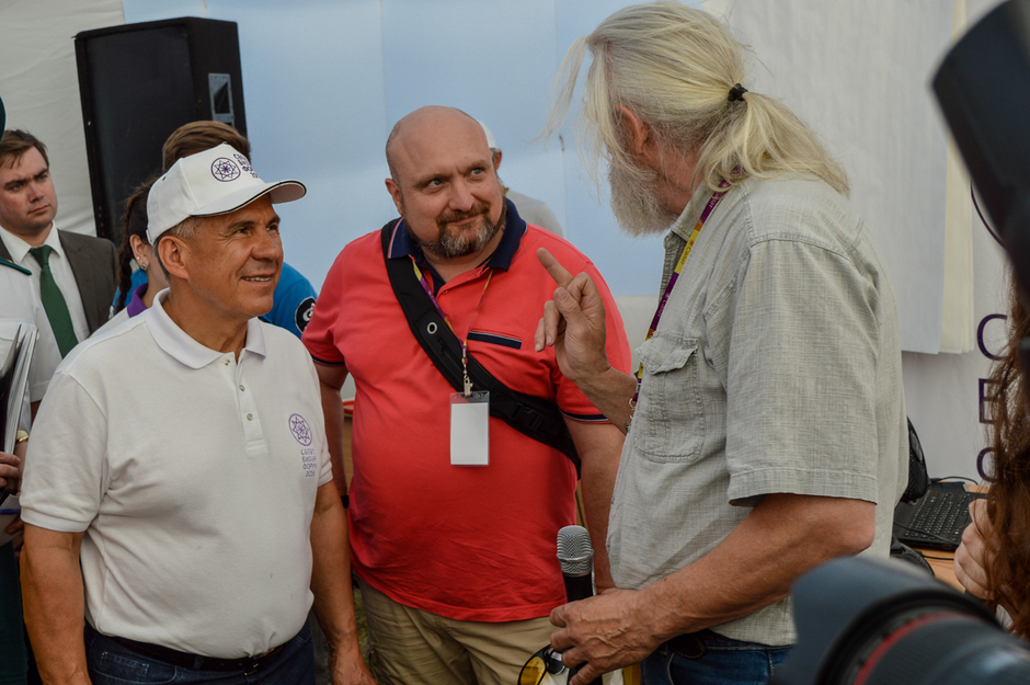 В одном шатре гостю рассказывали о круглом столе по экологии и показывали удостоверение народного экологического инспектора, которое выдались юным татарстанцам. Одному из таких президент пожал руку. В другом шатре ему рассказывали об IT-стартапах и даже познакомили с одним из зарубежных инвесторов, который выразил готовность вложить в татарстанский проект один миллион, наверное, рублей. На это Рустам Минниханов тоже пожал иностранцу руку, а тому, кто рассказывал о проекте, весело ответил: «Один миллион? Что так мало, больше надо было просить!»