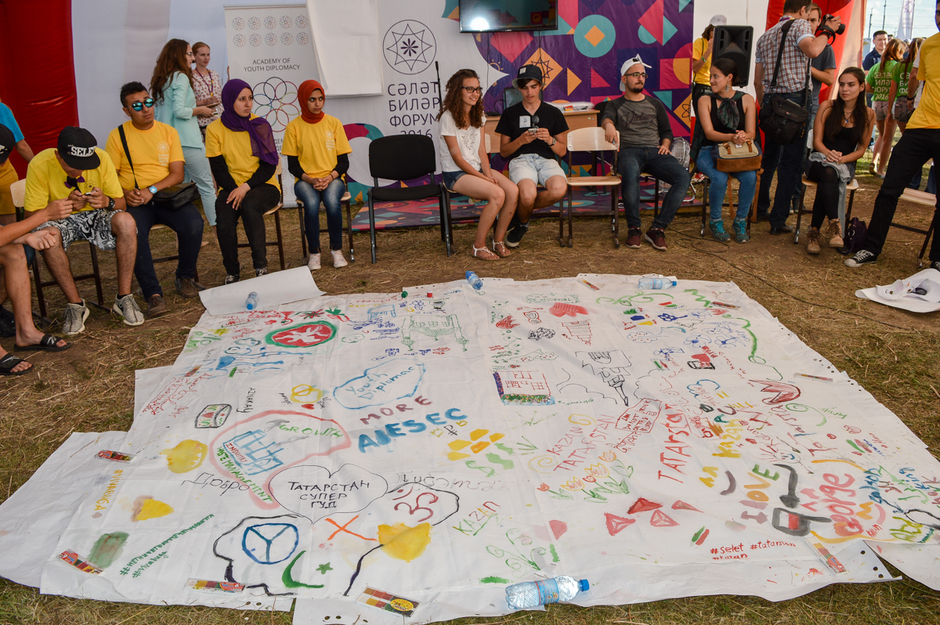 Накануне пятый по счету международный форум Сэлэт, посвященный экологии, посетил без преувеличения самый любимый и долгожданный его гость — Рустам Минниханов. В ожидании президента Татарстана жизнь на форуме шла своим чередом: в многочисленных шатрах проходили лекции, на улице под жарким солнцем одни ребята крутили педали на велосипеде, чтобы выработать электроэнергию и зарядить телефон, или просто сидели около домика, который без участия человека вырабатывает электричество за счет ветра и солнца, а другие — просто прогуливались, болтали или рисовали. И только на открытой площадке перед сценой неустанно с небольшими перерывами шла работа: ребята репетировали программу, которую покажут Рустаму Минниханову.