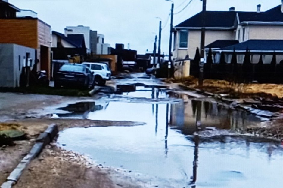Свои слова они проиллюстрировали видео, где на залитой после дождя улице бьет фонтан из канализационного колодца, а по краю затопленной дороги женщины с колясками и маленькими детьми пробираются к детскому саду. Юный велосипедист, проезжая лужу, падает с размаху в яму, которую не видно под слоем грязной воды. Вместо обещанной застройщиком ухоженной набережной Волги дорога, которая разрушается. А стоки из переполненной канализации стекают на почву и в Волгу.