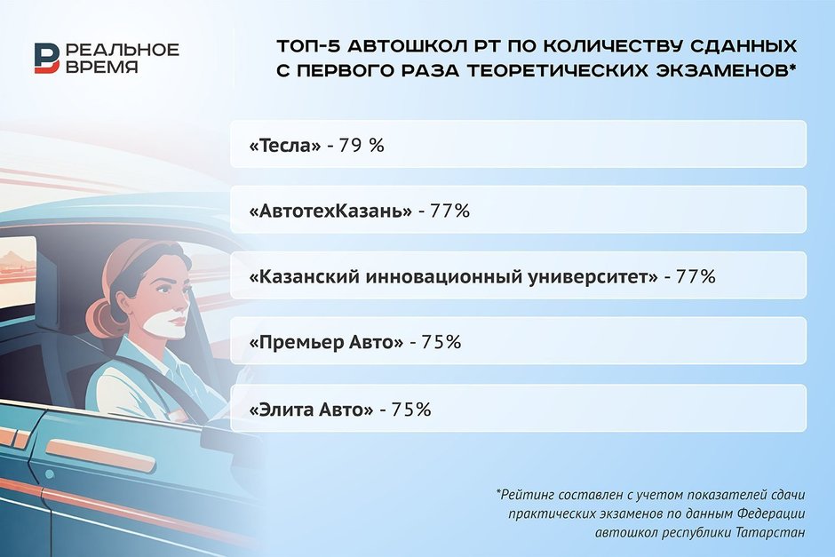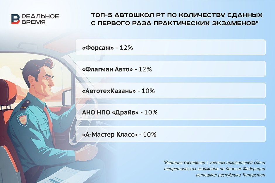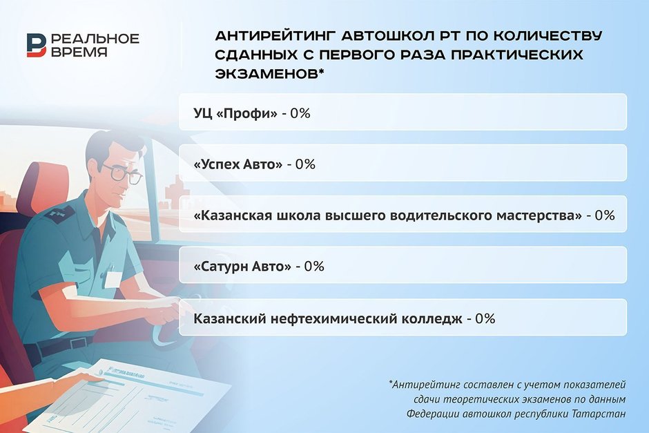 О качестве подготовки курсантов позволяют судить данные Федерации автошкол РТ за январь — октябрь 2025 года. Если теоретический экзамен с первого раза в основном сдают от 50% до 79% курсантов, то «практику» — максимум 12% из тех, что благополучно прошли внутренние испытания и были допущены к сдаче экзаменов в ГАИ.