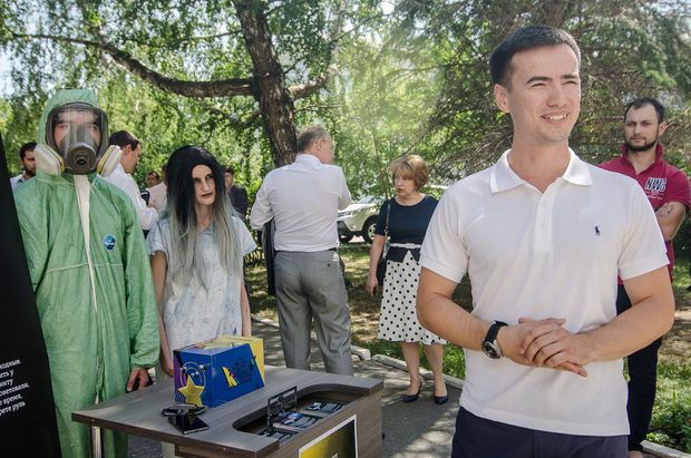 Выставка, на которой юные предприниматели должны были показать свой продукт, условно состояла из двух зон. Поскольку день был по-июльски солнечным, проекты, связанные со строительством и производством, разместили на улице перед библиотекой им. Лобачевского, тем более что их стенды были довольно большими. Именно здесь и стартовала VIP-экскурсия с участием министра экономики РТ Артема Здунова, помощника президента РТ Наталии Фишман, бизнес-омбудсмена Тимура Нагуманова, руководителя Центра поддержки предпринимательства РТ Дилюса Шавалиева и других.
