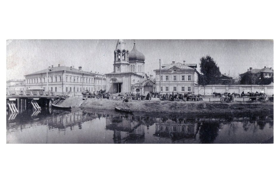 Перед нами стоит одна из старообрядческих церквей, Никольская, достроенная во второй половине XIX века. Ранее здесь стояла Коровинская беглопоповская часовня. Никольская была уже единоверческой. В советское время в купол попал снаряд, в 1930-е его убрали, в здании размещали конторы, квартиры, аптеку. На фото видно, что оно ветшает.