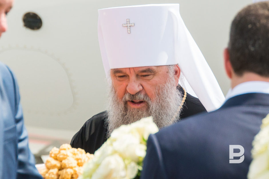 За полтора часа до прилета Патриарха в ВИП-зале аэропорта собралась внушительная делегация священнослужителей, среди которых были замечены особо авторитетные — наместник Раифского Богородицкого монастыря архимандрит Всеволод, его коллега из Кизической обители игумен Пимен, настоятель Никольского собора протоиерей Иоанн, секретарь епархии протоиерей Владимир и другие. Епископат РПЦ был представлен епископом Альметьевским и Бугульминским Мефодием и епископом Чистопольским и Нижнекамским Парменом. Естественно, что возглавлял делегацию встречающих митрополит Казанский и Татарстанский Феофан.