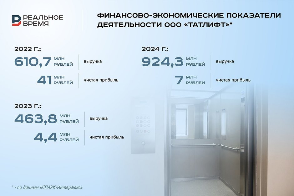 - Эти лифты ООО «Лифт-строй компания» приобрело у зеленодольского ООО «Татлифт» за 412,8 млн рублей.