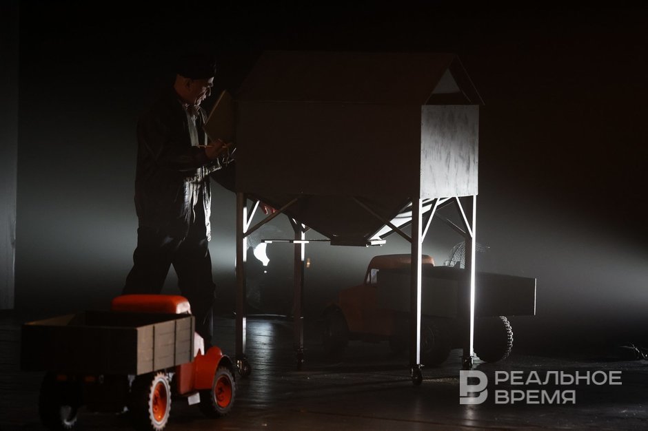 Водительский коллектив — Айдар Фатрахманов, Ильфак Хафизов, Булат Зиннатуллин, Рамиль Минханов, Салават Хабибуллин, Ильмас Насретдинов — главная удача спектакля: все они в кожаных куртках, все они разного роста, курят, хрипят, травят шутки, разбираются с покрышками, но, если надо, помогут товарищу. Ездят они на грузовиках, которые изображены в виде радиоуправляемых машинок.