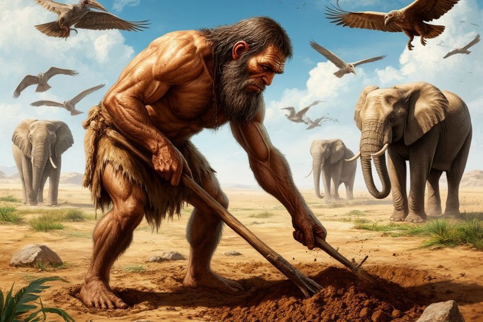Найденная палка, скорее всего, служила для выкапывания кореньев и клубней. Людмила Губаева/сгенерировано при помощи нейросети «Шедеврум»