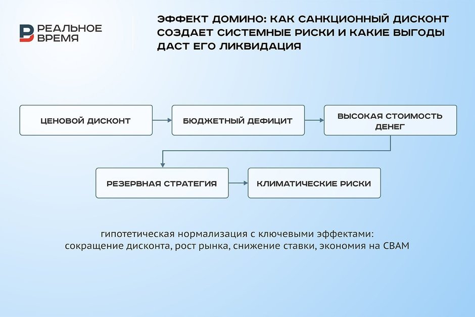 Страновой дисконт проявляется не только в сырьевых ценах. Он глубоко встроен в финансовые суверенные рейтинги (S&P и Moody's не присваивают рейтинги России, так как в марте 2022 года эти рейтинговые агентства приостановили работу в стране и отозвали свои оценки), стоимость заимствований для компаний и государства, а также в мультипликаторы фондового рынка. Так, по оценкам, совокупный «штраф» за геополитические риски для российского рынка капитала, выраженный в пониженных коэффициентах P/E и высоких ставках по кредитам, составляет десятки миллиардов долларов недополученной капитализации и дополнительных процентных расходов. Целенаправленная работа по его сокращению в ключевых сферах — от логистики до правовых гарантий для инвесторов — способна «разморозить» эту скрытую стоимость.
