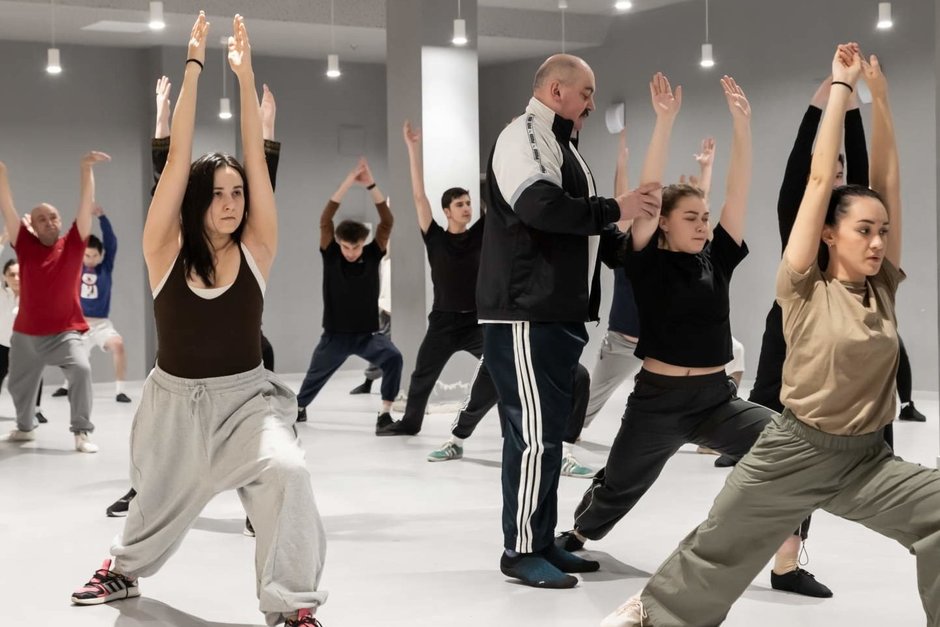 — Ильдара Хайрулина. Он ходит на занятия, бегает, прыгает, растягивается, учит комбинации. Я в каком-то невероятном восторге от этого артиста, от человека, потому как в таком почтенном возрасте все это запомнить и исполнить, и при этом еще в удовольствие, — это круто.