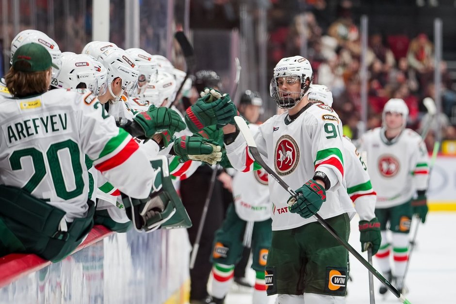 Чего бы это ни было, а такая тактика сработала на все 100 процентов. Уже в равных составах Никита Лямкин точным броском вывел «Ак Барс» вперед — 3:2. А затем Митчелл Миллер с передачи Яшкина отправил шайбу в сетку — 4:2.