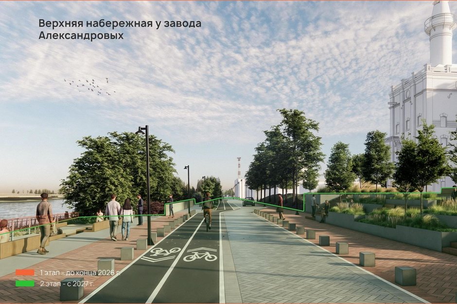Сейчас власти взялись за тот самый неблагоустроенный 1,5-километровый участок от улицы Нурсултана Назарбаева (Вахитовский мост) до памятника Шигабутдину Марджани. Самое главное — набережную разделят на нижний и верхний функциональные ярусы, анонсировала директор Института развития городов Татарстана Наиля Нагуманова. Концепция разработана архитектурными бюро Wowhaus и «АрхДесант» под кураторством института и мэрии Казани.