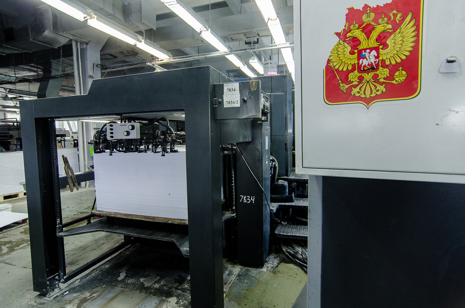 Неподдельный интерес у журналистов вызвали белые перчатки, в которых работали сотрудники типографии и которые надел Самигуллин, прежде чем нажать на пусковую кнопку печатного станка.