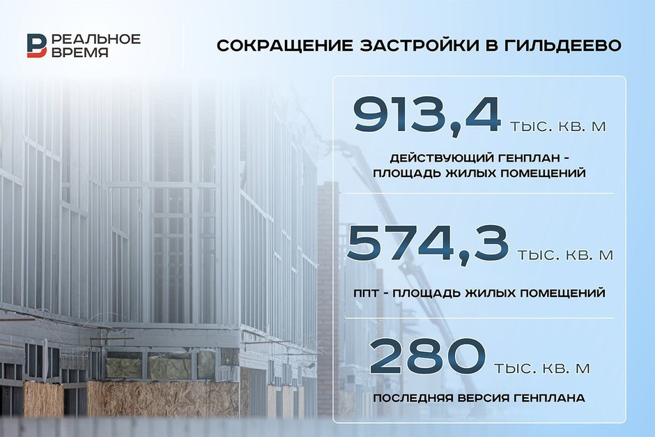 Предложение о строительстве в селе Гильдеево ЖК на 913,4 тыс. кв. м нецелесообразно, а целесообразно сократить объем планируемого строительства до 280 тыс. кв. м. Реальное время / realnoevremya.ru