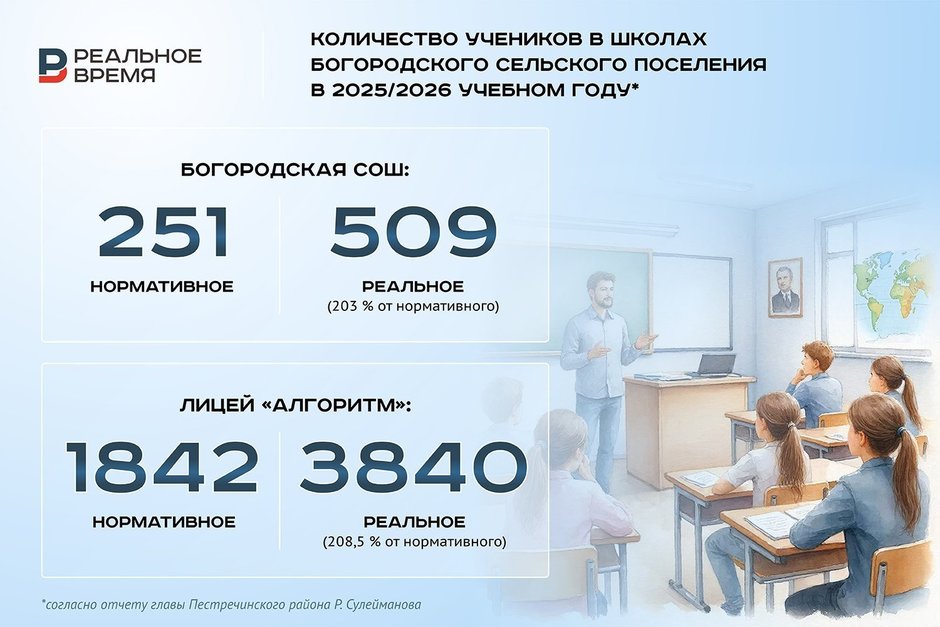 Открытым остается вопрос со школами в сельском поселении. Летом прошлого года Верховный суд Татарстана потребовал с 1 сентября 2026 года осуществлять прием детей в Богородскую СОШ с учетом требований СанПиН.