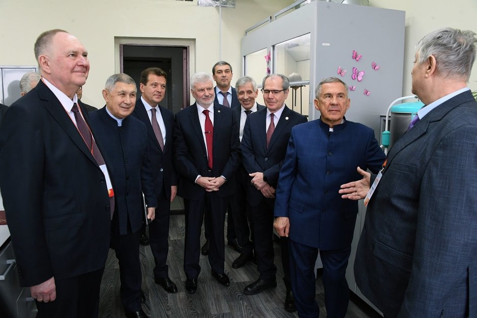 Рустам Минниханов в сопровождении официальных лиц ознакомился с работой института. с сайта rais.tatarstan.ru