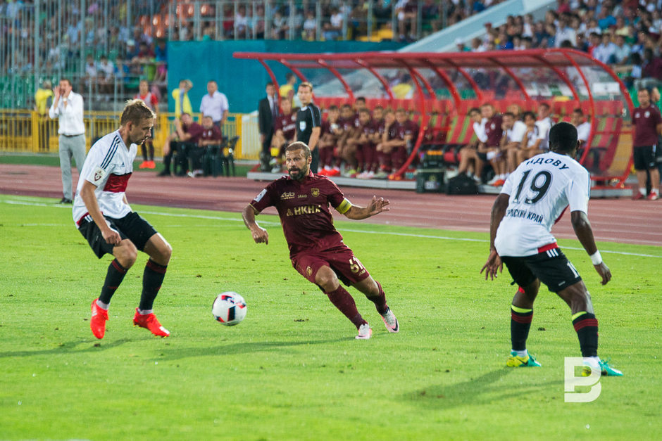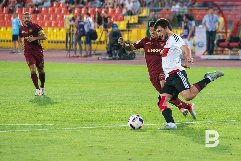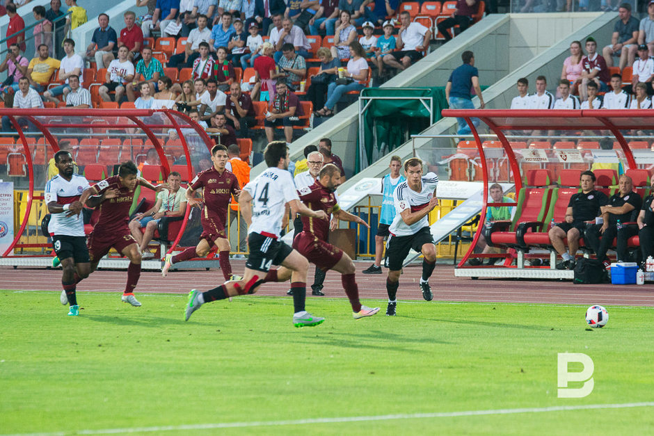 Как и в большинстве предсезонных игр, Хавьер Грасия решил сыграть в «классику» по расстановке 4-4-2, где пару форвардов составили Канунников (наконечник) и Карадениз (оттянутый форвард). Чуть ниже по центру эту парочку подпирал дуэт центральных хавбеков в составе Цакташ-Оздоев. На флангах полузащиты расположились Самуэль Гарсия (справа) и Ильзат Ахметов слева, хотя на сборах он играл справа и в центре. Линия обороны никаких вопросов в себе не таила. Устинов-Санчес-Бурлак-Набиуллин: то сочетание игроков, к которому мы привыкли в австрийских похождениях «Рубина».
