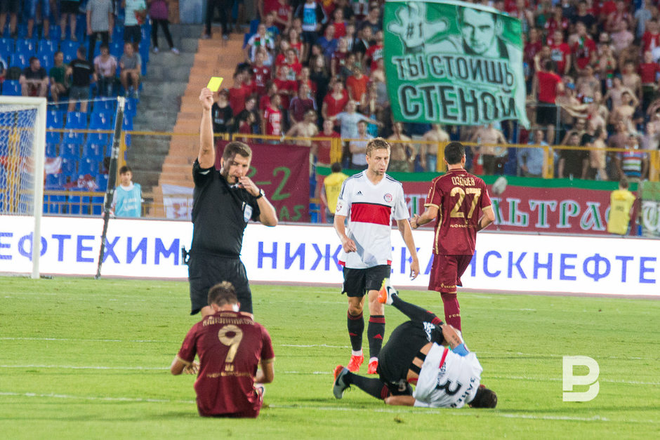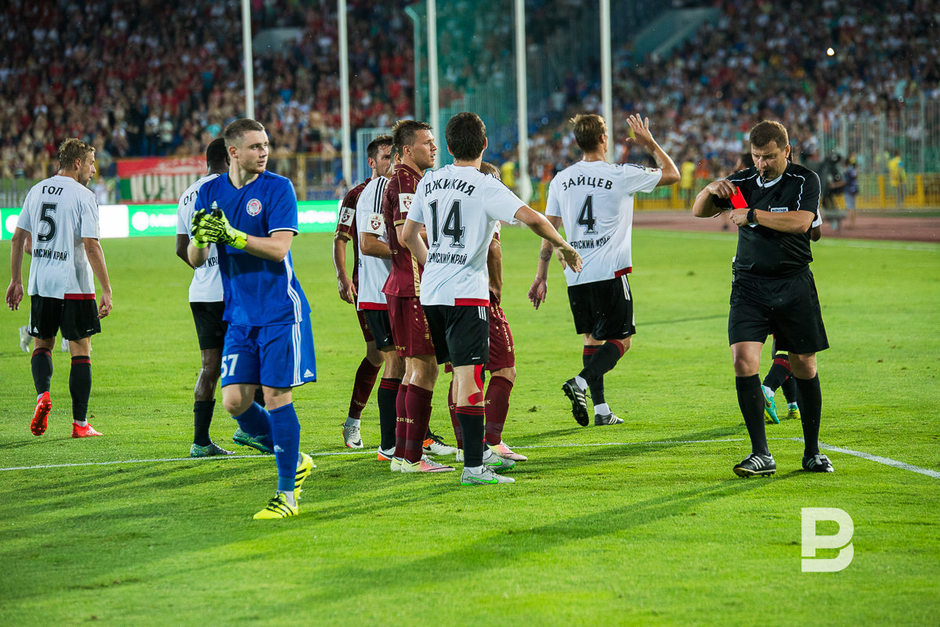 После удаления казанцы и вовсе потеряли всякий контроль над мячом, сосредоточившись на обороне. В компенсированное время первого тайма очередную желтую карточку, которую получил Набиуллин, трибуны встретили свистом. А зря, такие меры не удивили, больно уж нервным вышел первый тайм в исполнении «Рубина».