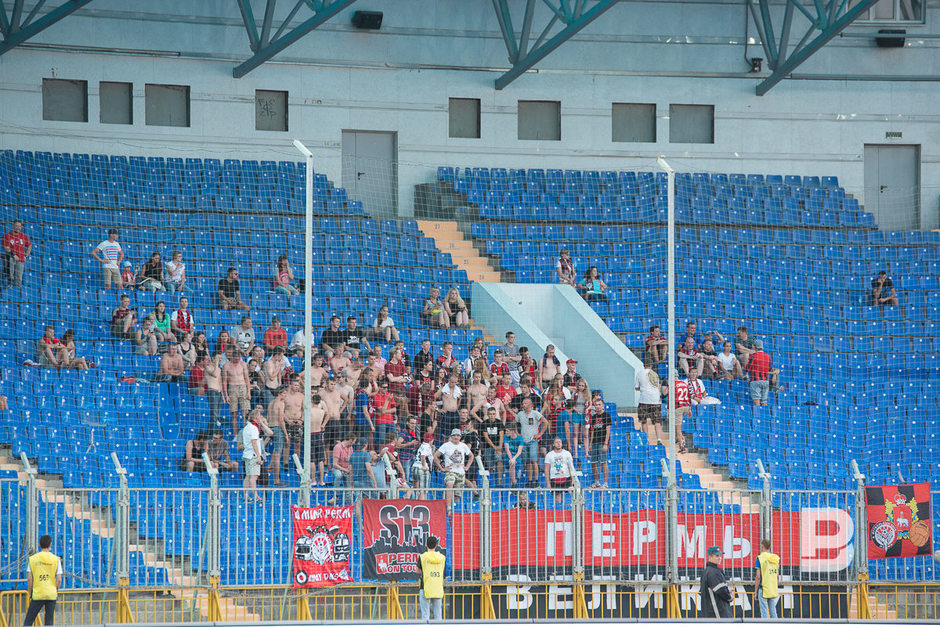Чисто визуально аншлага дебют обновленного «Рубина» не вызвал. Болельщики заполнили чуть больше половины чаши стадиона. Отметим, что пермский десант ультрас составил порядка 300 человек, а казанские организованные фанаты заняли полтора сектора на трибунах.