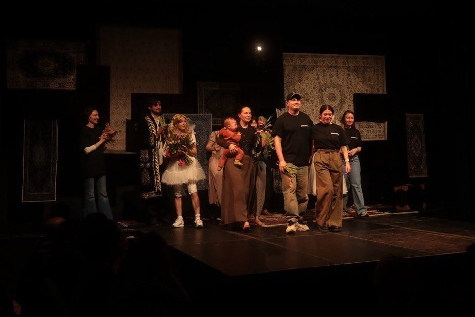 — В прологе и эпилоге появляется и сам Гаяз Исхаки, дающий нам, будто из Википедии, справку о многообразии языков, которые сосуществуют в мире, как части большого лоскутного одеяла, как элементы пэчворка, — говорит посетившая спектакль в Берлине критик Валерия Лившиц. — Отсюда и центральный визуальный мотив сценографии — парящие ковры на заднике.