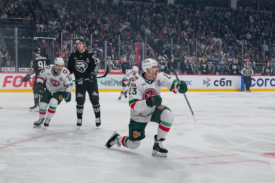 Арбитры еще по разу не засчитали взятие ворот в первом овертайме. В первом, потому что все решилось во втором дополнительном отрезке матча. Вначале судьи увидели блокировку вратаря Арефьева в моменте с голом Андрея Светлакова, а затем не рассмотрели пересечение шайбой линии ворот за спиной Николаева. А после перерыва, уже в пятом по счету периоде, «Ак Барс» снял вопросы о победителе. Это Илья Сафонов прервал свою 18-матчевую безголевую серию и принес «барсам» победу — 3:2!